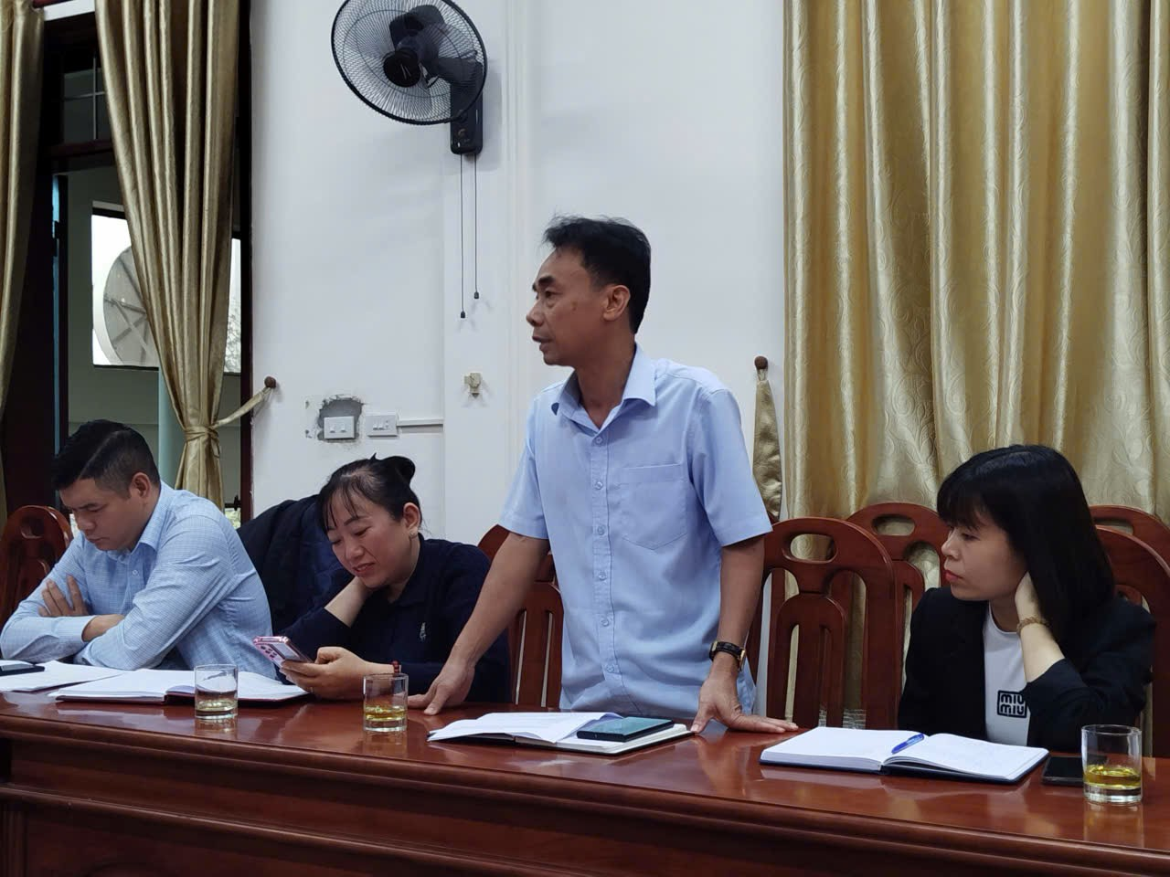 Tham gia cuộc họp có các cán bộ cơ quan phụ trách HTX các địa bàn. Đồng chí Nguyễn Bá Châu – Chủ tịch, chủ trì cuộc họp.