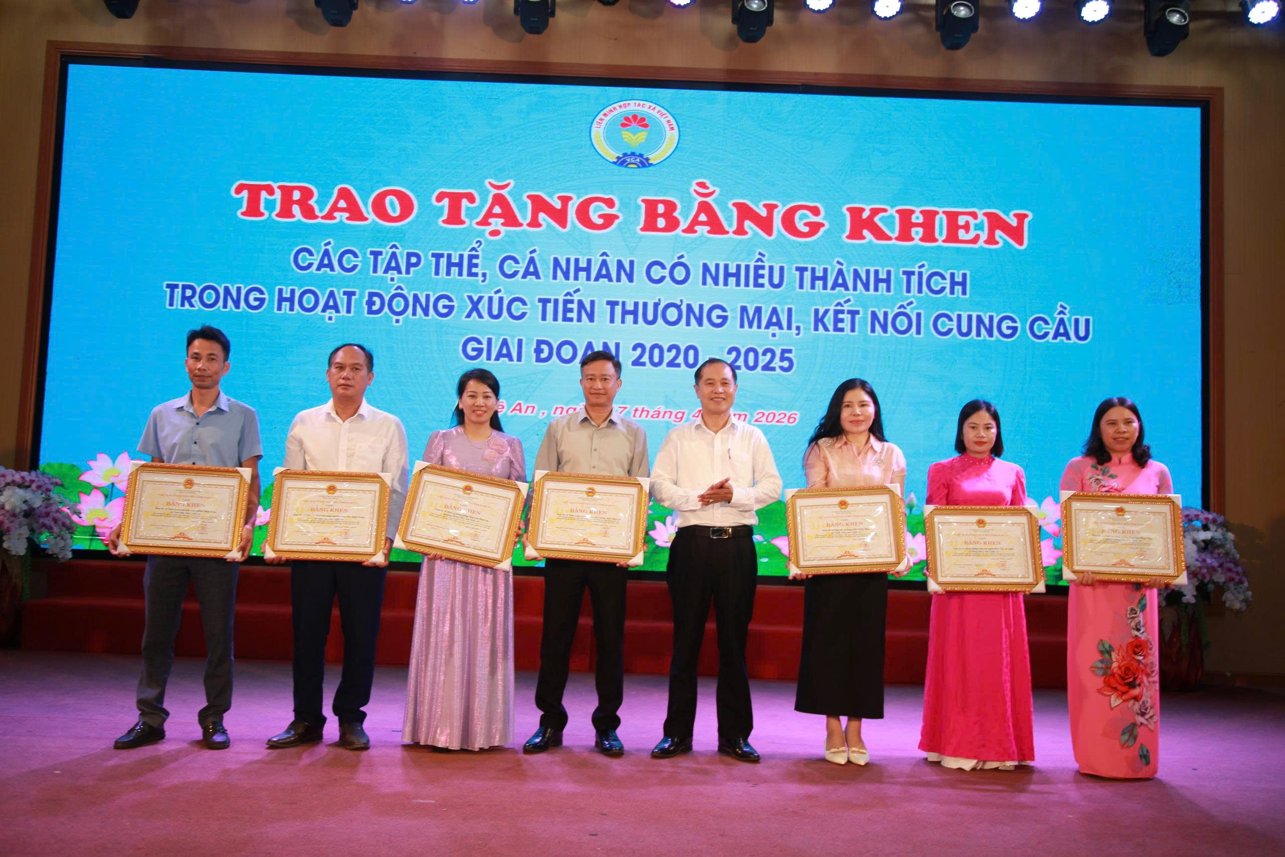 Cũng tại Hội nghị, đồng chí Nguyễn Bá Châu - Chủ tịch Liên minh HTX đã trao Bằng khen của UBND tỉnh cho các tập thể HTX và các cá nhân có nhiều thành tích trong hoạt động xúc tiến thương mại giai đoạn 2020-2025.